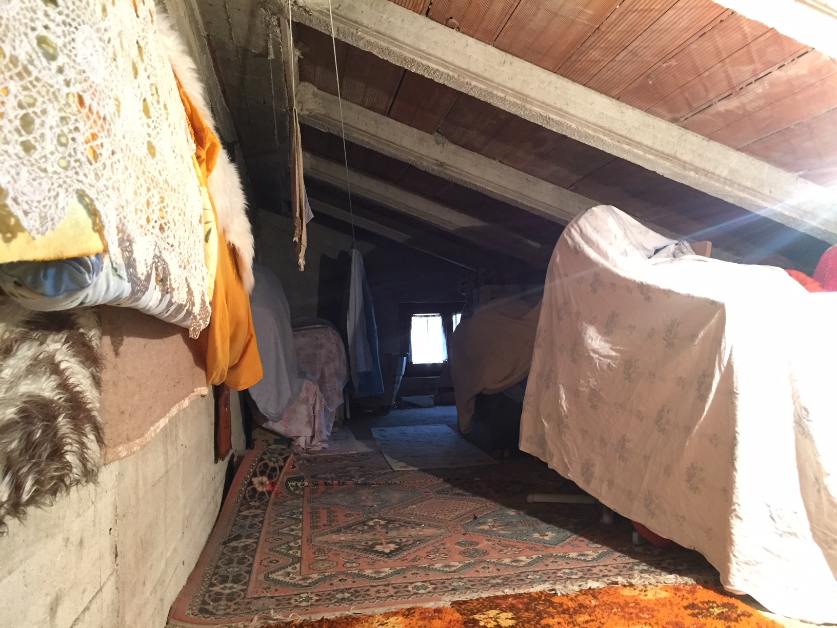 Poi ci sono le CANTINE al piano terra di 43mq, un GARAGE di 66mq e una SOFFITTA di 88mq, con una CORTE ESTERNA di 100mq.