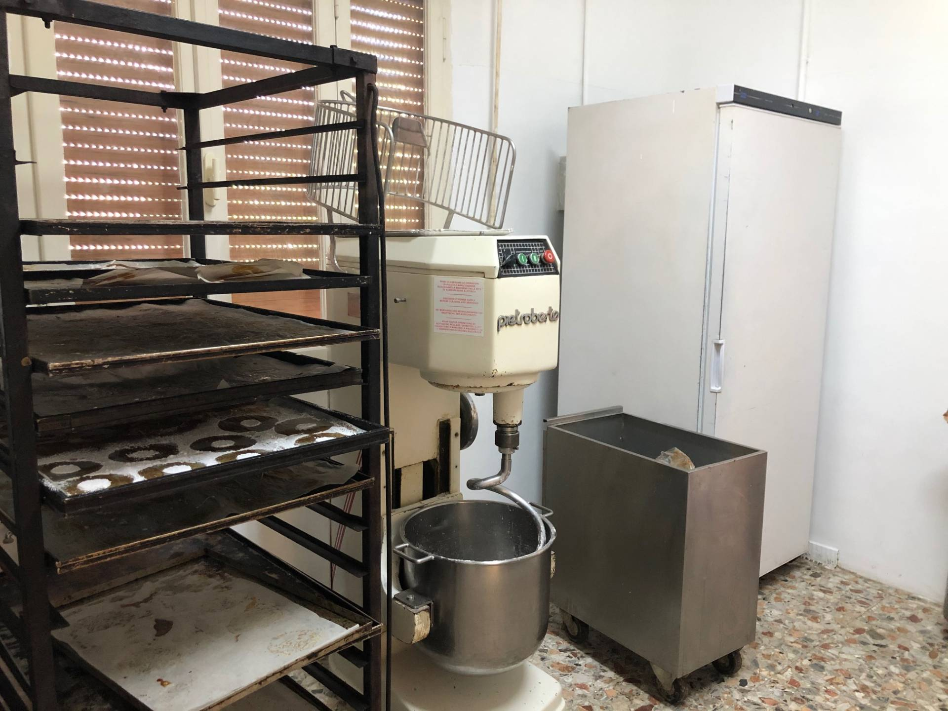 Entrando c'è un bancone espositivo, un bancone caffetteria/bar e un bagno con antibagno. Nel retro ci sono 190mq per la lavorazione salati e la lavorazione dolci, con uno spogliatoio e un secondo bagno. Tutti i macchinari sono ottimi, funzionanti e compresi nella Vendita.